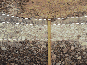 Perpetual Pavements use multiple layers of durable asphalt to produce a safe, smooth, long-lasting road. The Hot Mix Asphalt (HMA) design begins with a strong, yet flexible bottom layer that resists tensile strain caused by traffic, and thus stops cracks from forming in the bottom of the pavement. A strong intermediate layer completes the permanent structural portion, and a final